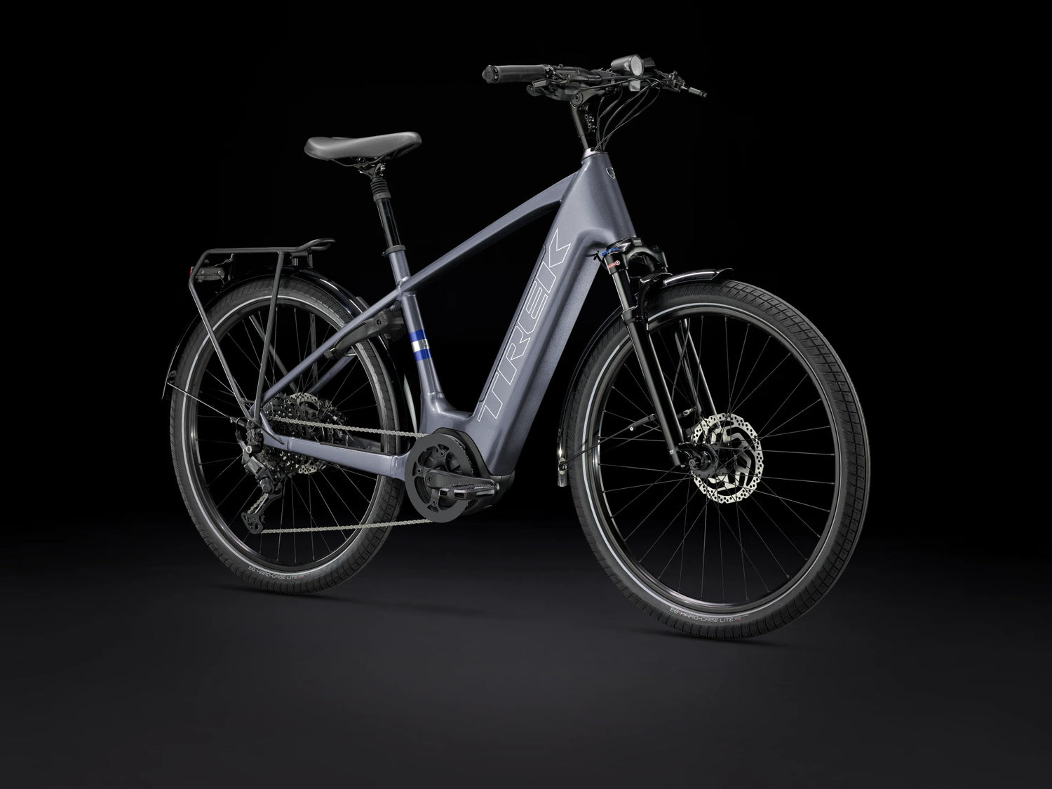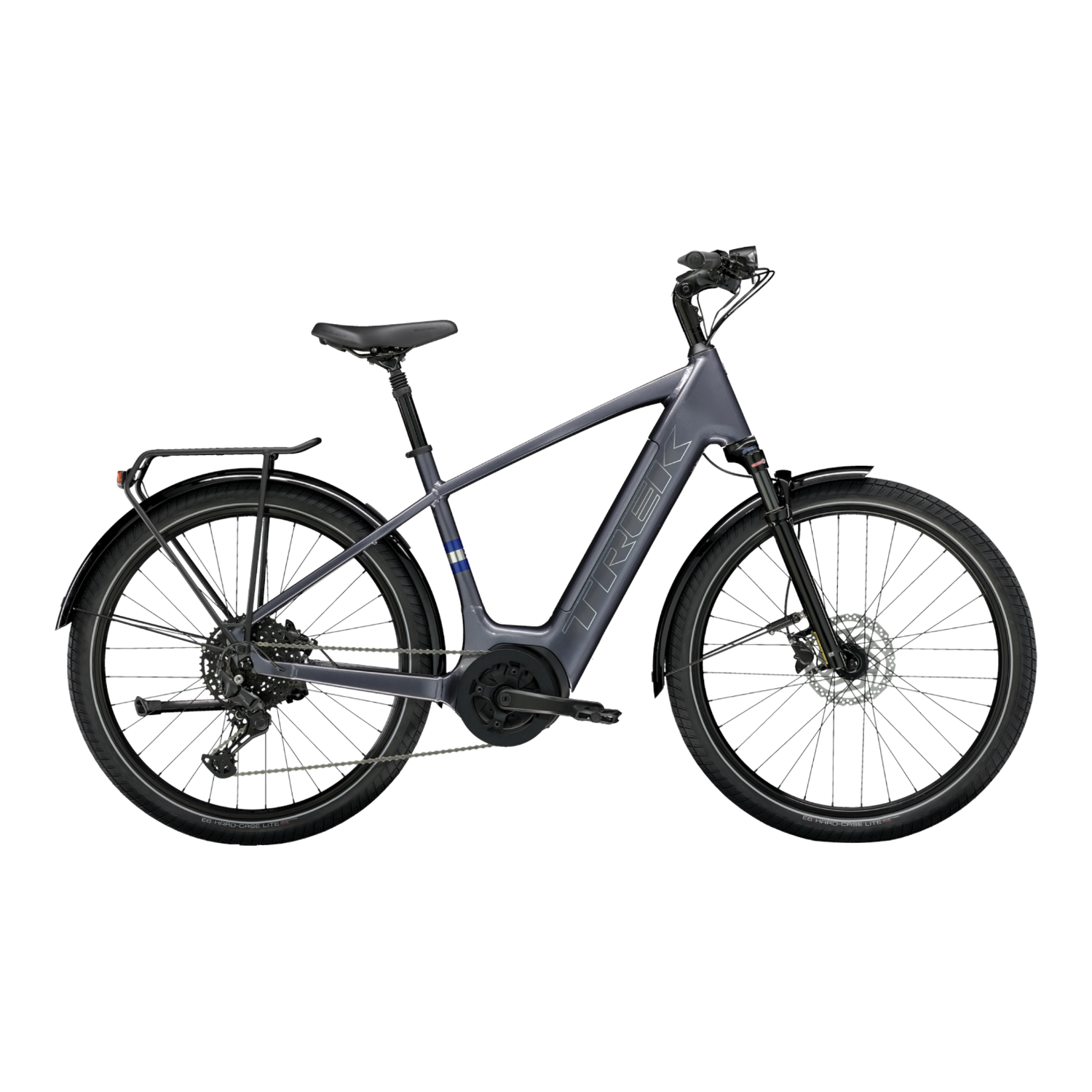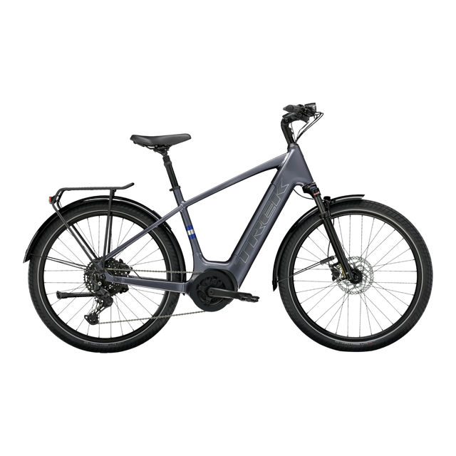A lightweight Alpha Smooth Aluminium frame, a Bosch Performance Line Sport (250 W, 75 Nm) drive unit capable of sustaining speeds up to 45 km/h, a long-range 545 Wh battery that's fully encased in the frame and a Bosch Purion controller. A suspension fork and seat post for soaking up bumps. Plus, a 10-speed Shimano CUES drivetrain, hydraulic disc brakes for all-weather stopping power, wide puncture-resistant tyres for extra stability, ergonomic grips, a kickstand, lights, a MIK rack and mudguards.