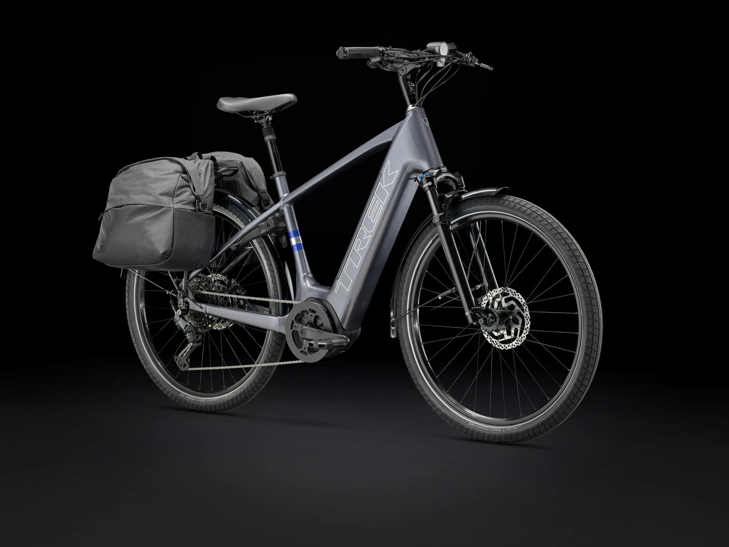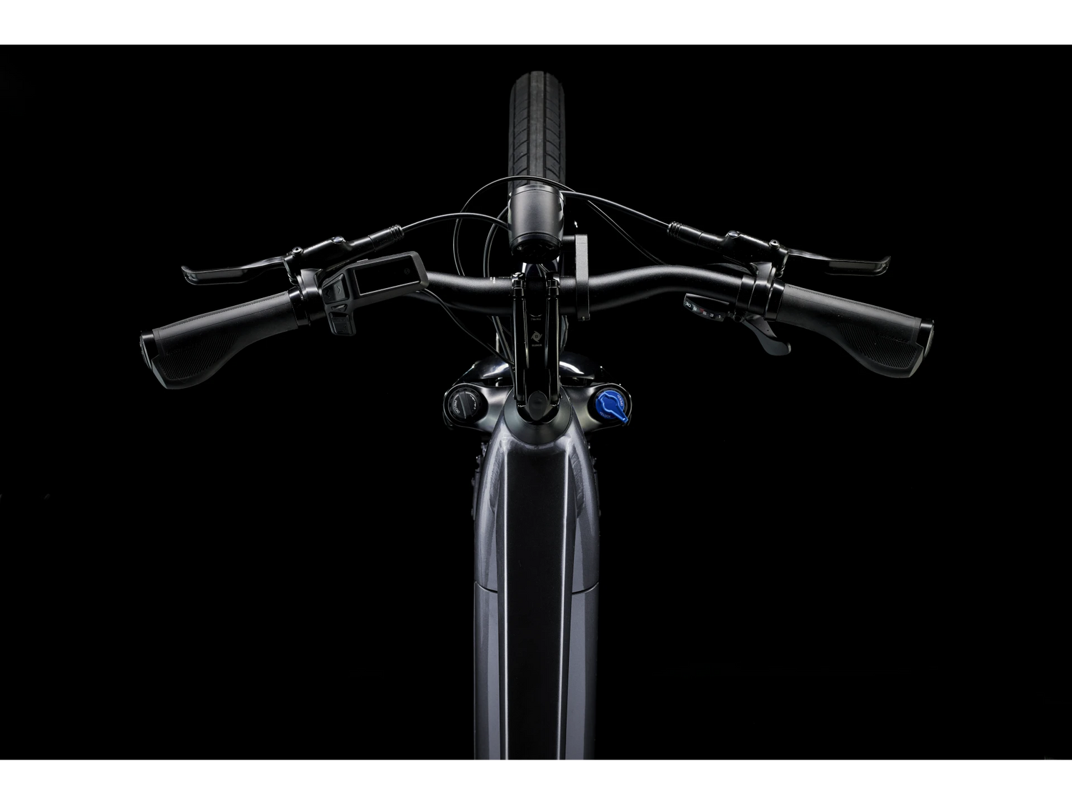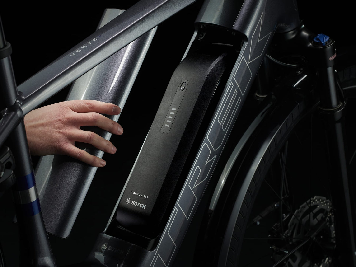 A lightweight Alpha Smooth Aluminium frame, a Bosch Performance Line Sport (250 W, 75 Nm) drive unit capable of sustaining speeds up to 45 km/h, a long-range 545 Wh battery that's fully encased in the frame and a Bosch Purion controller. A suspension fork and seat post for soaking up bumps. Plus, a 10-speed Shimano CUES drivetrain, hydraulic disc brakes for all-weather stopping power, wide puncture-resistant tyres for extra stability, ergonomic grips, a kickstand, lights, a MIK rack and mudguards.