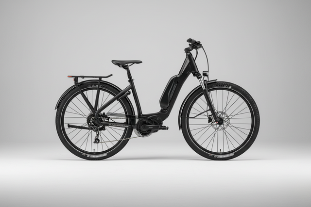 Everyday practicality with the ability to head off the beaten track. A strong Shimano drive unit with 504 Wh external battery in our low step-through frame, plus it's fully equipped with fenders, lights, lock, rack and rugged rubber.